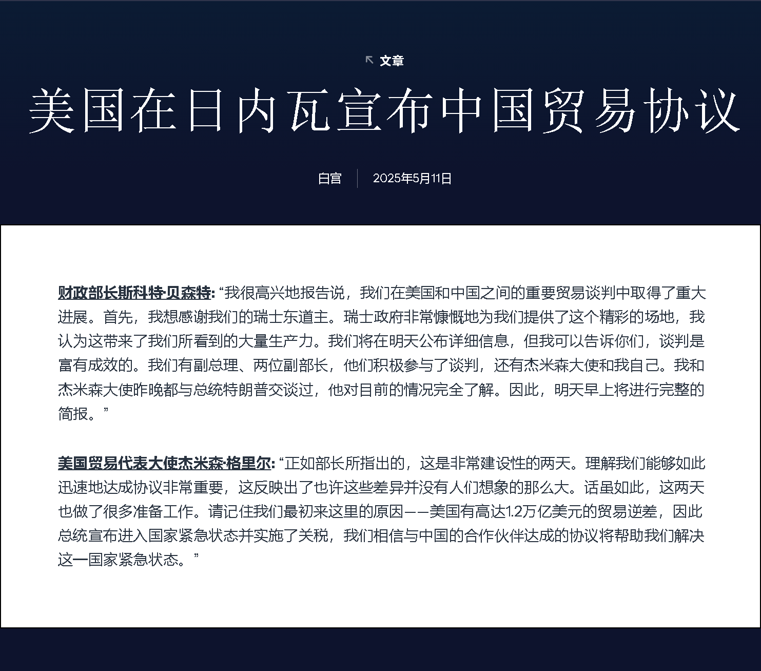 新華社日內(nèi)瓦5月11日電(記者石松 焦倩)中美經(jīng)貿(mào)高層會(huì)談5月10日至11日在瑞士日內(nèi)瓦舉行。中美經(jīng)貿(mào)中方牽頭人、國(guó)務(wù)院副總理何立峰當(dāng)?shù)貢r(shí)間11日晚在出席中方代表團(tuán)舉行的新聞發(fā)布會(huì)時(shí)表示,此次中美經(jīng)貿(mào)高層會(huì)談坦誠(chéng)、深入、具有建設(shè)性,達(dá)成重要共識(shí),并取得實(shí)質(zhì)性進(jìn)展。雙方一致同意建立中美經(jīng)貿(mào)磋商機(jī)制。中美雙方將盡快敲定相關(guān)細(xì)節(jié),并將于5月12日發(fā)布會(huì)談達(dá)成的聯(lián)合聲明。