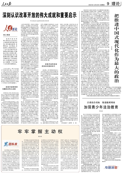 新征程上,我們要緊密團結(jié)在以習近平同志為核心的黨中央周圍,深刻認識和把握改革開放帶來的深刻啟示,更好以中國式現(xiàn)代化全面推進強國建設、民族復興偉業(yè)。