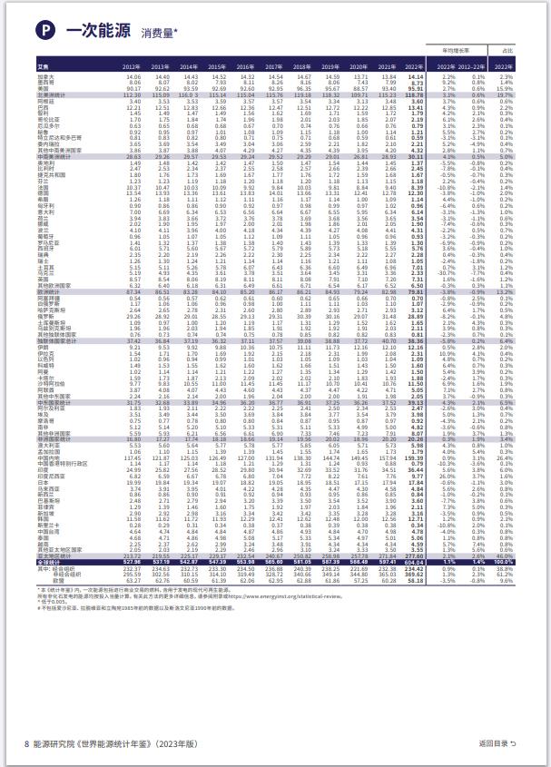 能源研究所 世界能源統(tǒng)計(jì)評論