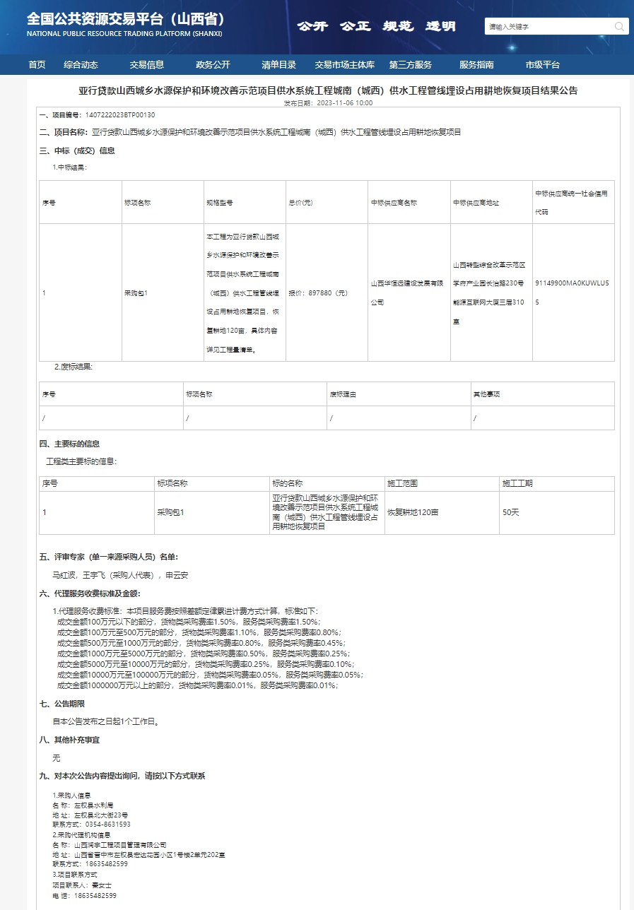 亞行貸款山西城鄉(xiāng)水源保護(hù)和環(huán)境改善示范項(xiàng)目供水系統(tǒng)工程城南(城西)供水工程管線埋設(shè)占用耕地恢復(fù)項(xiàng)目
