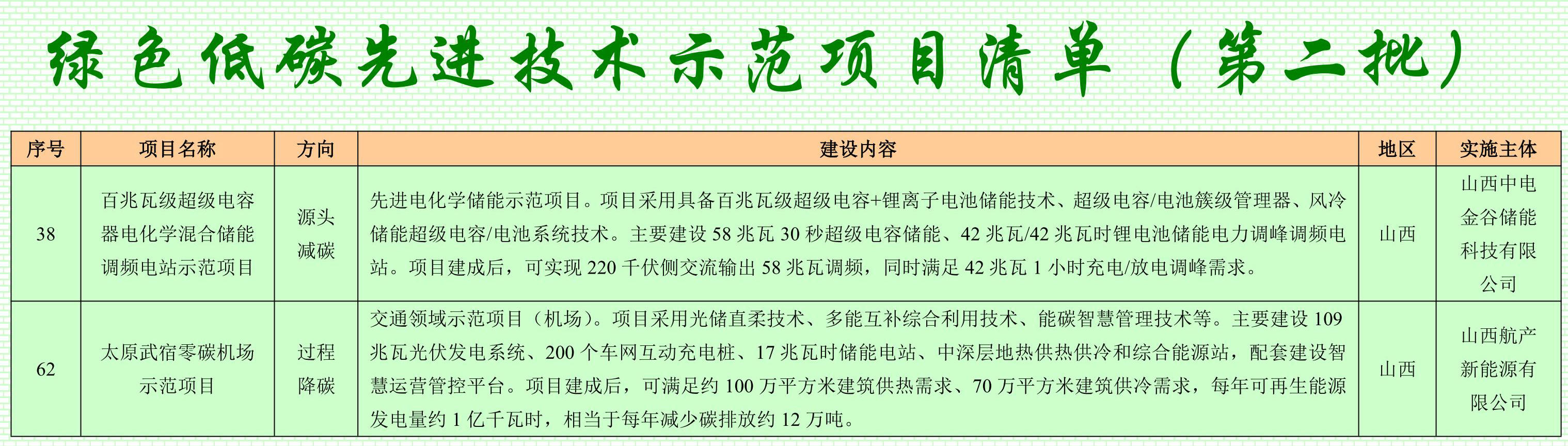 本報太原5月16日訊(記者王龍飛)近日,國家發(fā)展改革委正式公布《綠色低碳先進技術(shù)示范項目清單(第二批)》,我省有兩個項目成功入選,分別是太原武宿零碳機場項目和中電金谷偏關(guān)混合儲能調(diào)頻電站項目。