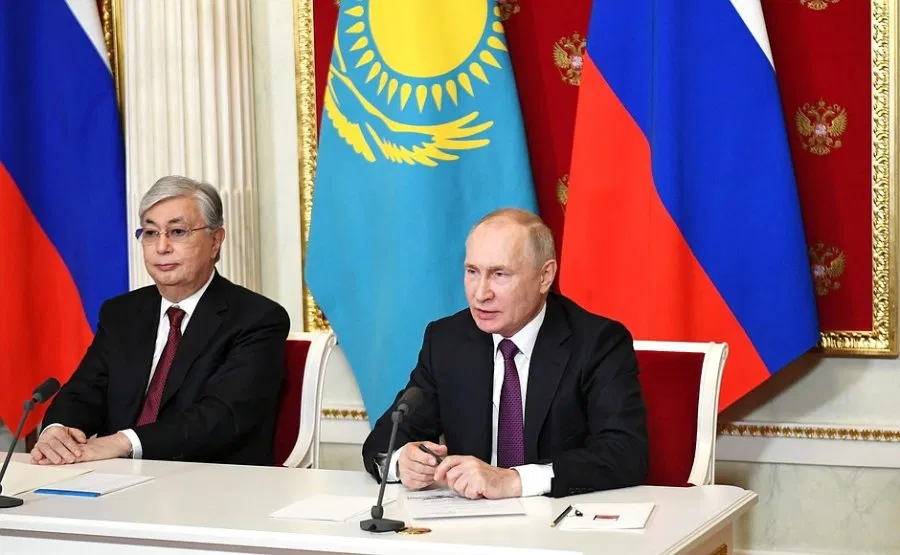 哈薩克總統(tǒng)托卡耶夫(左)和俄羅斯總統(tǒng)普京 克里姆林宮官網(wǎng)