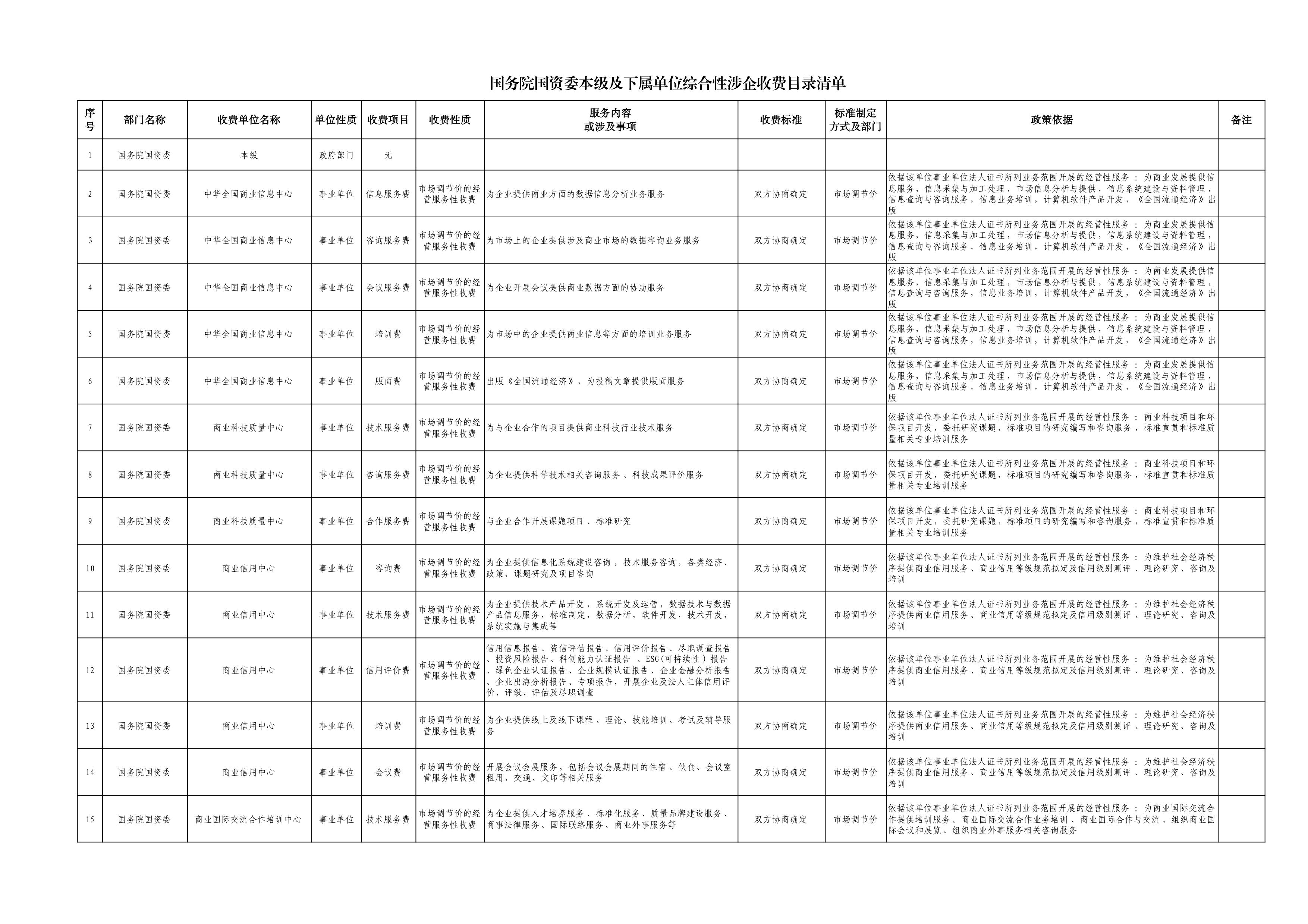 國務(wù)院國資委本級及下屬單位綜合性涉企收費目錄清單