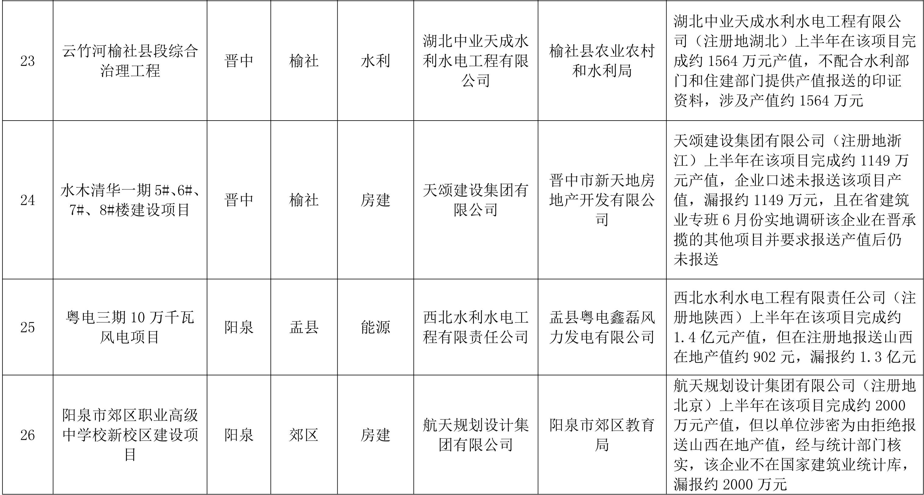 按照安排,省建筑業(yè)運行工作專班于2025年7月28日至8月8日開展了全省建筑業(yè)運行情況督查檢查工作,實地核查了11個市38個縣(市、區(qū))和山西轉(zhuǎn)型綜合改革示范區(qū)的120個在建項目。督查中發(fā)現(xiàn)部分項目施工企業(yè)存在產(chǎn)值漏報、數(shù)據(jù)造假、不配合行業(yè)部門提供印證資料等問題,違反了《中華人民共和國統(tǒng)計法》第八條“國家機關(guān)、企業(yè)事業(yè)單位和其他組織以及個體工商戶和個人等統(tǒng)計調(diào)查對象,必須依照本法和國家有關(guān)規(guī)定,真實、準確、完整、及時地提供統(tǒng)計調(diào)查所需的資料,不得提供不真實或者不完整的統(tǒng)計資料,不得遲報、拒報統(tǒng)計資料”規(guī)定,無法真實反映我省建筑業(yè)在地產(chǎn)值情況,給國家和我省經(jīng)濟造成損失。