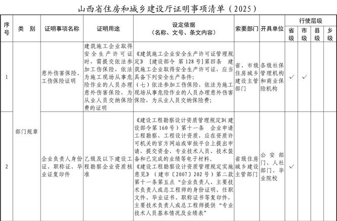 根據(jù)法律法規(guī)立改廢情況,我廳對(duì)《山西省住房和城鄉(xiāng)建設(shè)廳證明事項(xiàng)清單(2023)》進(jìn)行了修訂,形成《山西省住房和城鄉(xiāng)建設(shè)廳證明事項(xiàng)清單(2025)》(附后),現(xiàn)予以公布。