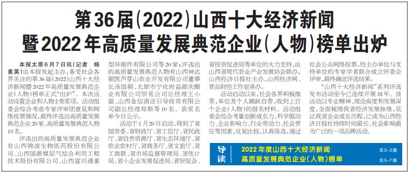 2022山西十大經(jīng)濟(jì)新聞系列評選活動(dòng)高質(zhì)量發(fā)展典范企業(yè)榜單