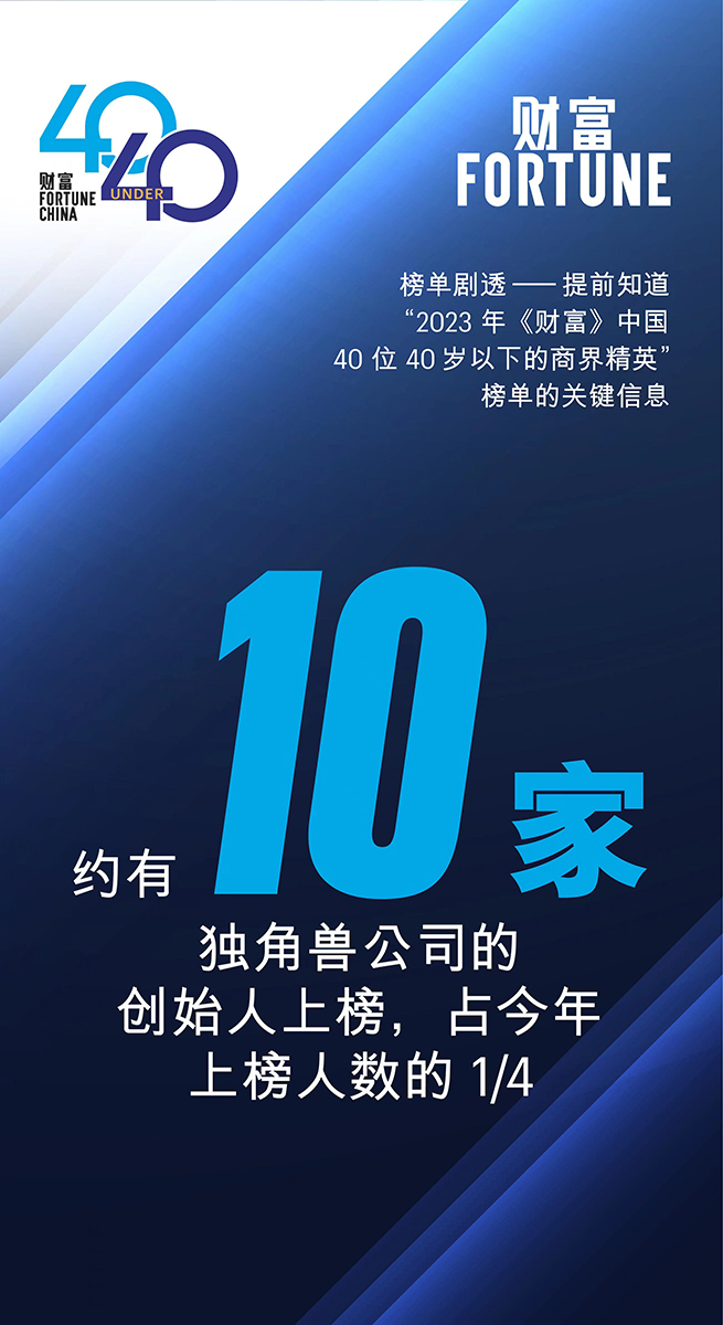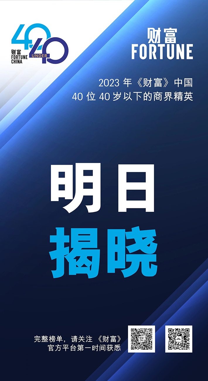 2023年《財富》中國40位40歲以下的商界精英榜單將于明日發(fā)布