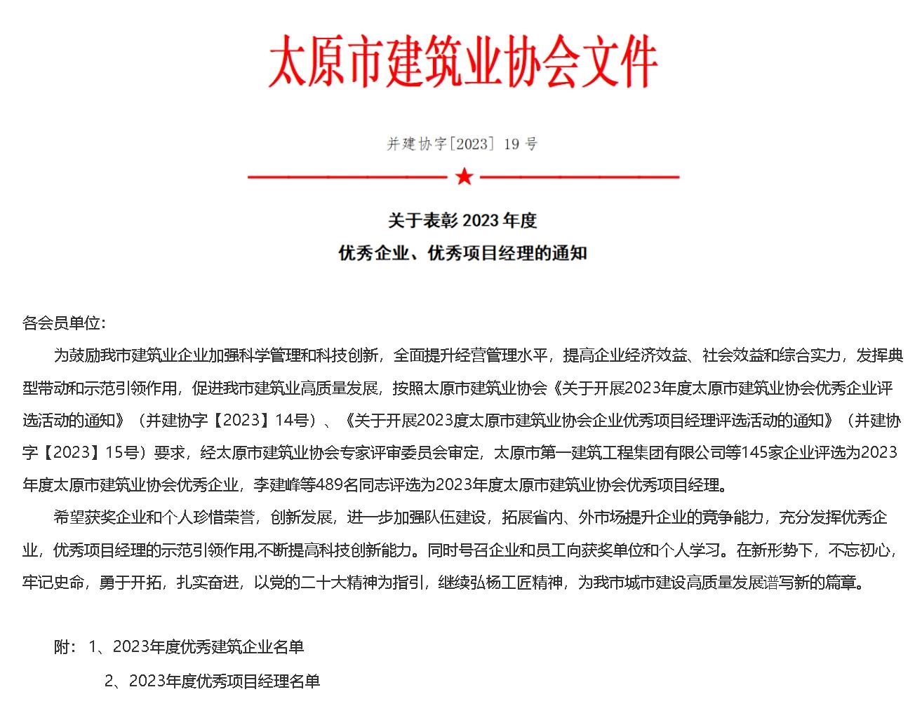 關(guān)于表彰2023年度優(yōu)秀企業(yè)、優(yōu)秀項目經(jīng)理的通知
