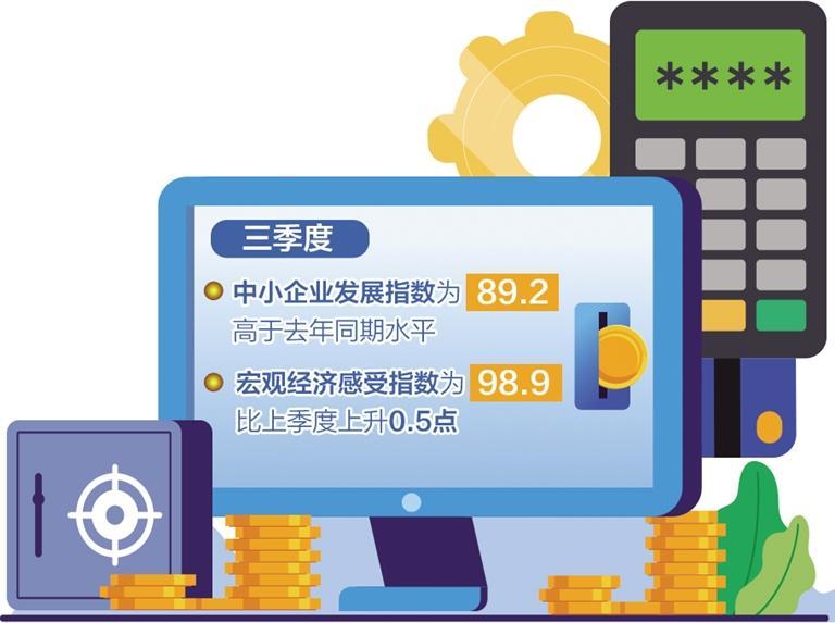 三季度,反映企業(yè)信心狀況的宏觀經(jīng)濟感受指數(shù)為98.9,比上季度上升0.5點,上升幅度較為明顯?!敖衲暌詠?,國家先后出臺促進民營企業(yè)發(fā)展壯大的意見及相關(guān)細則、促進民間投資17條措施,并在國家發(fā)展改革委設(shè)立民營經(jīng)濟發(fā)展局。隨著一系列政策出臺及組織架構(gòu)的建立健全,中小企業(yè)發(fā)展信心顯著提振?!敝煊裾f。