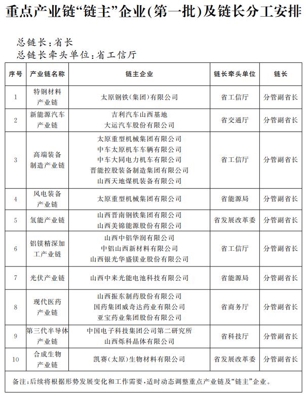 近日,經(jīng)自主申報、審核推薦等程序,我省確定重點(diǎn)產(chǎn)業(yè)鏈“鏈主”企業(yè)名單(第二批)。新增的重點(diǎn)產(chǎn)業(yè)鏈中,新型儲能產(chǎn)業(yè)鏈圍繞“鋰/鈉離子電池及相關(guān)材料—儲能系統(tǒng)—新型儲能電站”相關(guān)環(huán)節(jié)成鏈,“鏈主”企業(yè)為山西尚太鋰電科技有限公司;廢棄資源綜合利用產(chǎn)業(yè)鏈圍繞“廢鋼等再生資源回收—加工處理—資源再利用”“煤矸石、粉煤灰等固廢—綜合利用—終端消費(fèi)”相關(guān)環(huán)節(jié)成鏈,“鏈主”企業(yè)為山西金宇科林科技有限公司;碳基新材料產(chǎn)業(yè)鏈圍繞“苯—己內(nèi)酰胺—尼龍6聚合切片—工程塑料”“煤焦油—特種炭黑、改質(zhì)瀝青—高端橡膠、炭電極”相關(guān)環(huán)節(jié)成鏈,“鏈主”企業(yè)為山西陽光焦化集團(tuán)股份有限公司、山西三元炭素有限責(zé)任公司、山西潞寶集團(tuán)焦化有限公司、山西永鑫煤焦化有限責(zé)任公司;信息技術(shù)融合應(yīng)用產(chǎn)業(yè)鏈圍繞“計算機(jī)等設(shè)備制造—數(shù)字基礎(chǔ)設(shè)施—應(yīng)用集成”相關(guān)環(huán)節(jié)成鏈,“鏈主”企業(yè)為山西云時代技術(shù)有限公司;銅基新材料產(chǎn)業(yè)鏈圍繞“銅礦采選—銅冶煉—銅材料加工—終端產(chǎn)品”相關(guān)環(huán)節(jié)成鏈,“鏈主”企業(yè)為中條山有色金屬集團(tuán)有限公司;裝配式建筑產(chǎn)業(yè)鏈圍繞“裝配式設(shè)計—裝配式部品部件生產(chǎn)—工程施工”相關(guān)環(huán)節(jié)成鏈,“鏈主”企業(yè)為山西建設(shè)投資集團(tuán)有限公司。(晉帥妮)