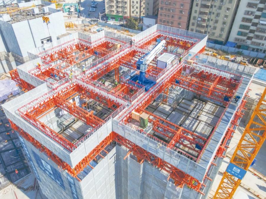 鋁模拼裝、鋼筋綁扎、混凝土澆筑……在深圳南山智造紅花嶺基地城市更新項目工地,幾十臺大型施工機械忙碌作業(yè),不久前,一棟近百米高的大型廠房完成首棟封頂,實現(xiàn)“工業(yè)上樓”。