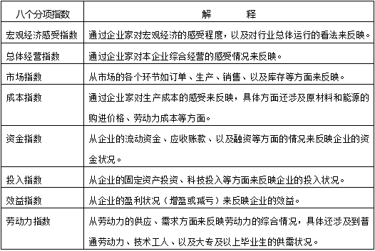 中小企業(yè)發(fā)展指數(shù)通過(guò)對(duì)國(guó)民經(jīng)濟(jì)八大行業(yè)的3000家中小企業(yè)進(jìn)行調(diào)查,利用中小企業(yè)對(duì)本行業(yè)運(yùn)行和企業(yè)生產(chǎn)經(jīng)營(yíng)狀況的判斷和預(yù)期數(shù)據(jù)編制而成,是反映中小企業(yè)經(jīng)濟(jì)運(yùn)行狀況的綜合指數(shù)。