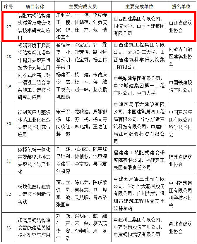 根據(jù)《工程建設(shè)科學(xué)技術(shù)獎(jiǎng)評(píng)選辦法(2021年修訂稿)》的規(guī)定,經(jīng)科委辦公室形審、專家網(wǎng)評(píng)、科委專家委員會(huì)評(píng)審、科學(xué)技術(shù)委員會(huì)審定和公示,以及會(huì)長(zhǎng)會(huì)議批準(zhǔn),授予肖明清同志工程建設(shè)最高科學(xué)技術(shù)獎(jiǎng);授予張敏等3名同志工程建設(shè)科學(xué)技術(shù)杰出成就獎(jiǎng);授予王鵬等5名同志工程建設(shè)科學(xué)技術(shù)青年創(chuàng)新獎(jiǎng);授予“雙向大曲率抗強(qiáng)風(fēng)高升層液壓自升式懸臂模板關(guān)鍵技術(shù)與應(yīng)用”成果工程建設(shè)技術(shù)發(fā)明獎(jiǎng)一等獎(jiǎng),授予“臺(tái)風(fēng)影響區(qū)城際鐵路高架車(chē)站施工綜合技術(shù)及應(yīng)用”等5項(xiàng)成果工程建設(shè)技術(shù)發(fā)明獎(jiǎng)二等獎(jiǎng);授予“水電工程設(shè)計(jì)施工一體化數(shù)字關(guān)鍵技術(shù)研發(fā)與應(yīng)用”等3項(xiàng)成果工程建設(shè)科學(xué)技術(shù)進(jìn)步獎(jiǎng)特等獎(jiǎng),授予“大型雪上場(chǎng)館數(shù)字化建設(shè)及運(yùn)維管理關(guān)鍵技術(shù)”等47項(xiàng)成果工程建設(shè)科學(xué)技術(shù)進(jìn)步獎(jiǎng)一等獎(jiǎng),授予“大型公共建筑機(jī)電系統(tǒng)綠色低碳建造關(guān)鍵技術(shù)”等325項(xiàng)成果工程建設(shè)科學(xué)技術(shù)進(jìn)步獎(jiǎng)二等獎(jiǎng)。