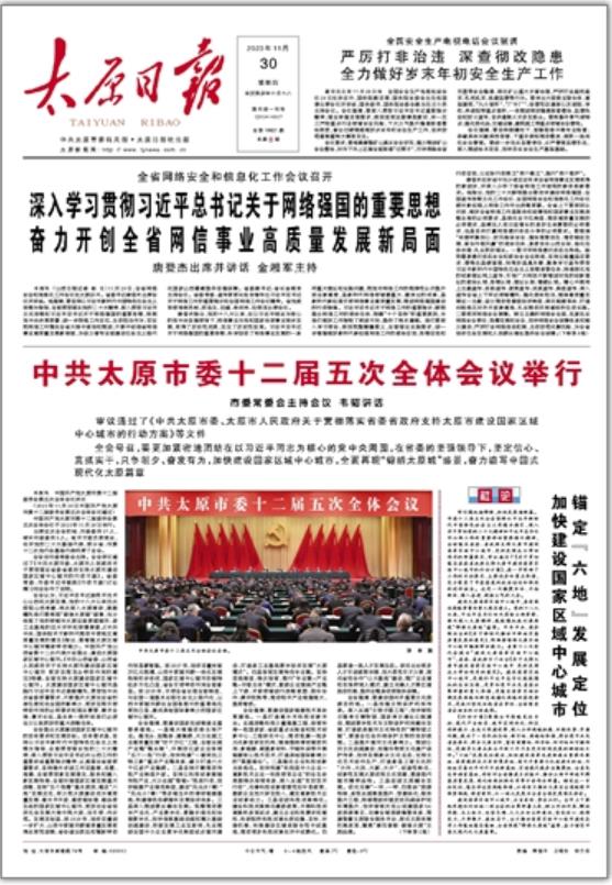 中國(guó)共產(chǎn)黨太原市第十二屆委員會(huì)第五次全體會(huì)議于2023年11月29日舉行。