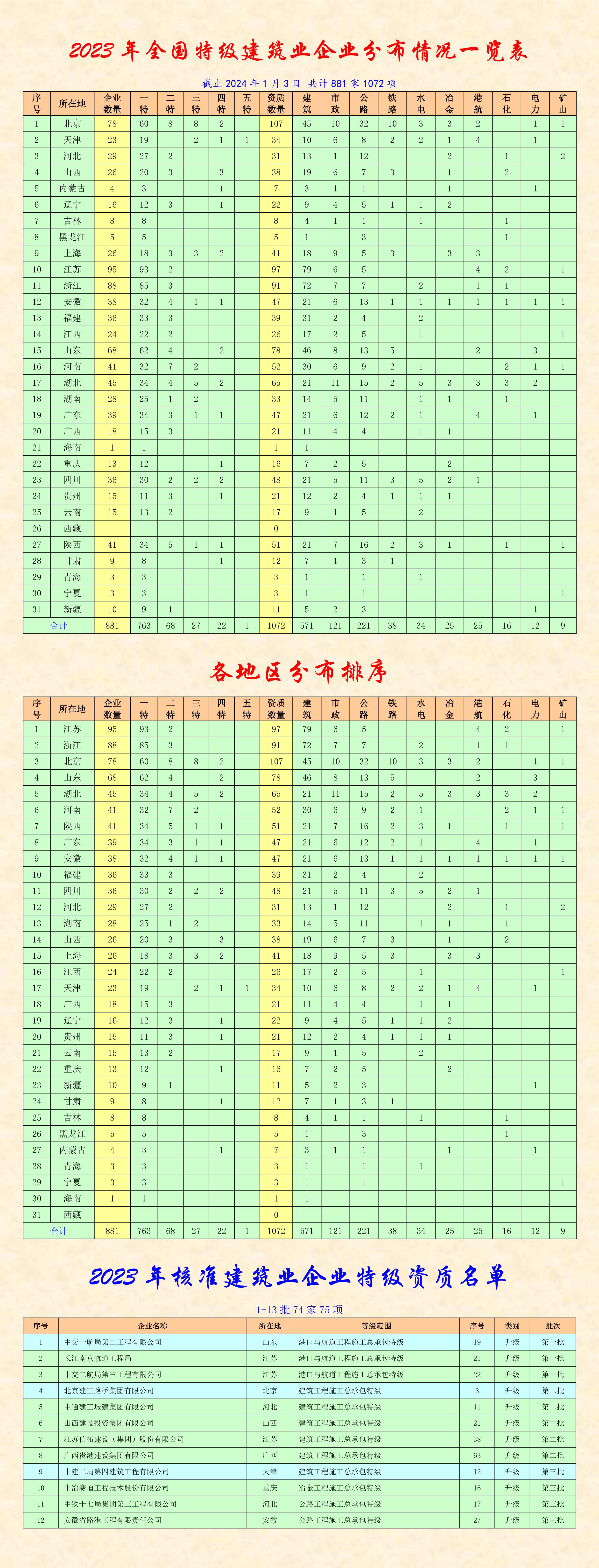 根據(jù)《中華人民共和國建筑法》及有關(guān)建設(shè)工程企業(yè)資質(zhì)管理規(guī)定,現(xiàn)將我部核準的工程設(shè)計資質(zhì)、建筑業(yè)企業(yè)資質(zhì)的單位名單(2023年度第十三批)予以公布。未予核準的單位可登錄住房城鄉(xiāng)建設(shè)部政務(wù)服務(wù)門戶,點擊“申請事項辦理進度查詢(受理發(fā)證信息查詢)”欄目查詢原因。