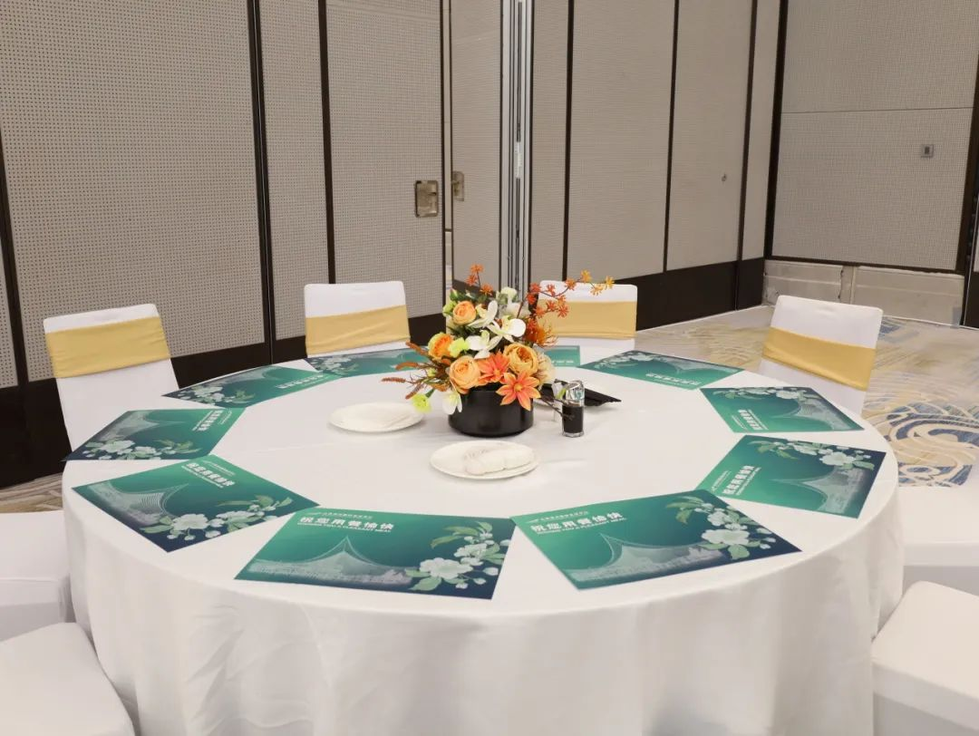 會場內定制化布置,會議用水、紙、筆、桌簽等會務物資一應俱全;全廳設施完善,智能化控溫控濕系統(tǒng)保證會場環(huán)境舒適。專業(yè)團隊全程跟蹤服務,從桌型排列、動線規(guī)劃、彩排演練到內場執(zhí)行,每個環(huán)節(jié)精益求精,確保會議順利進行,為與會人員打造了流暢的高品質會議環(huán)境。