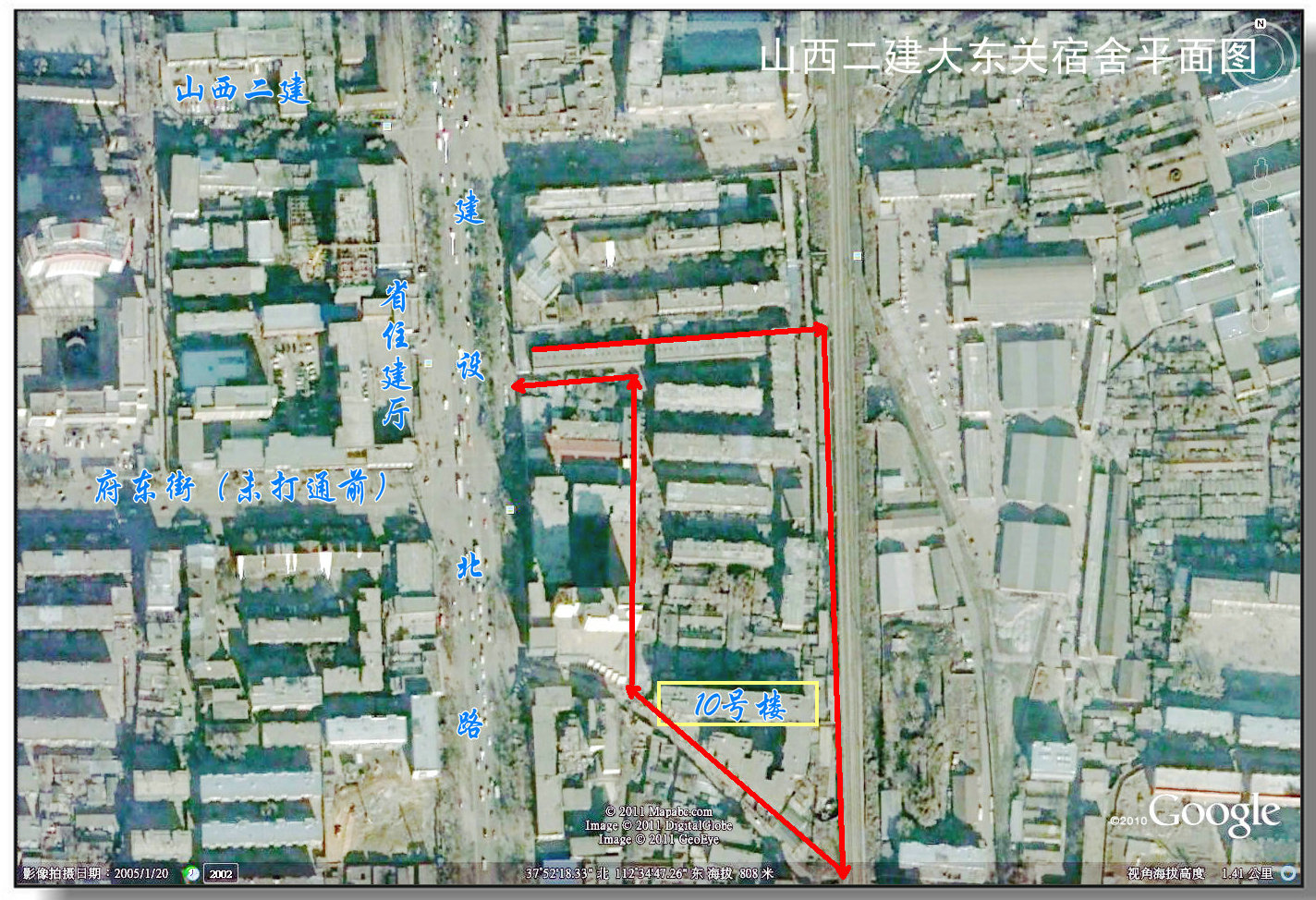 下午得空,查看2005年至2012年在協(xié)會(huì)時(shí)保存的文檔,看到了這幅在2005年1月20日,用谷歌地球下載的衛(wèi)星圖片。