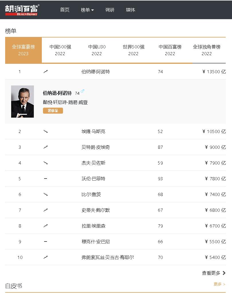 【行業(yè)資料】2023胡潤全球富豪榜2023-03-24 【行業(yè)資料】2021-2022胡潤中國民營企業(yè)百強(qiáng)榜2023-03-24 【行業(yè)動(dòng)態(tài)】2022胡潤中國民營企業(yè)可持續(xù)發(fā)展百強(qiáng)榜2023-03-24 【行業(yè)動(dòng)態(tài)】2023胡潤全球富豪榜變動(dòng)劇烈!LV總裁首登首富,445人落選2023-03-24 【行業(yè)資料】2022意才·胡潤財(cái)富報(bào)告2023-03-12 【行業(yè)資料】胡潤世界500強(qiáng)2020-20222023-02-01 【行業(yè)資料】2019-2022胡潤中國(民營企業(yè))500強(qiáng)排行榜2023-02-01 【行業(yè)資料】胡潤全球富豪榜 胡潤中國百富榜總榜單2023-01-29 【行業(yè)資料】胡潤百富榜總榜單2023-01-06