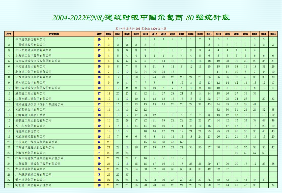 2004-2022ENR/建筑時報中國承包商 80 強(qiáng)