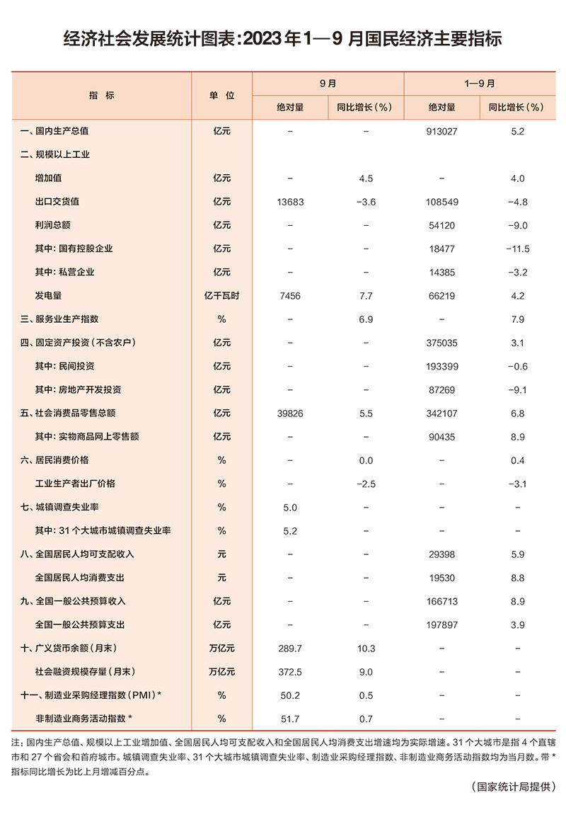 經(jīng)濟社會發(fā)展統(tǒng)計圖表:2023年1—9月國民經(jīng)濟主要指標(biāo)