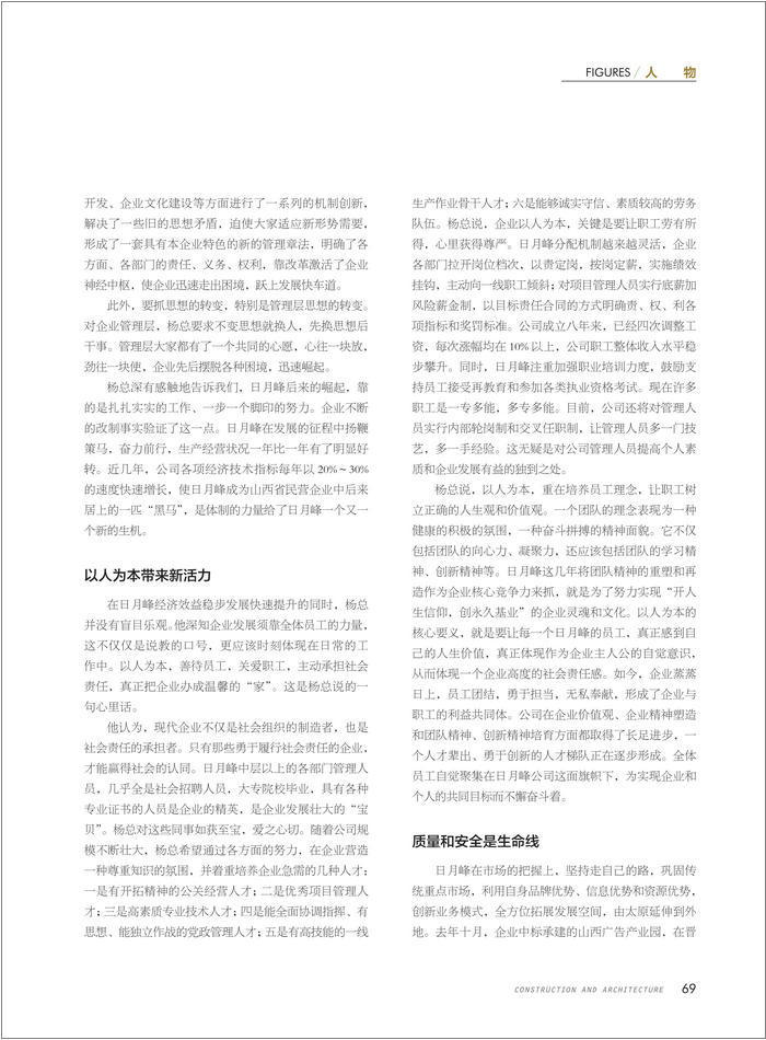 日月峰在市場(chǎng)的把握上,堅(jiān)持走自己的路,鞏固傳統(tǒng)重點(diǎn)市場(chǎng),利用自身品牌優(yōu)勢(shì)、信息優(yōu)勢(shì)和資源優(yōu)勢(shì),創(chuàng)新業(yè)務(wù)模式,全方位拓展發(fā)展空間,由太原延伸到外地。去年十月,企業(yè)中標(biāo)承建的山西廣告產(chǎn)業(yè)園,在晉中市太谷縣舉行奠基儀式。這是山西又一項(xiàng)重點(diǎn)大項(xiàng)目,占地 270 畝,總建筑面積 250000 平方米,預(yù)計(jì)總投資 8.5億元。該工程分二期建設(shè),其中一期工程預(yù)計(jì)投入 4.5 億元人民幣。這項(xiàng)工程將解決 3000 余人的就業(yè)問(wèn)題。工程建成后,將使山西廣告業(yè)向集約化、專(zhuān)業(yè)化、規(guī)范化、標(biāo)準(zhǔn)化、國(guó)際化的方向發(fā)展。這項(xiàng)工程是對(duì)日月峰這幾年抓工程質(zhì)量工作又一次嚴(yán)峻的考驗(yàn)。事實(shí)上,日月峰這些年將工程質(zhì)量一直視為企業(yè)的生命線。楊總認(rèn)為,日月峰這幾年超常規(guī)發(fā)展,靠的就是工程的質(zhì)量。質(zhì)量是企業(yè)贏得市場(chǎng)、樹(shù)立信譽(yù)的根本保證。在太原,日月峰響當(dāng)當(dāng)?shù)穆曌u(yù)靠的就是質(zhì)量。公司從來(lái)沒(méi)有一項(xiàng)工程質(zhì)量出現(xiàn)過(guò)問(wèn)題。在日月峰,幾年來(lái)已經(jīng)形成人人關(guān)心質(zhì)量、個(gè)個(gè)重視質(zhì)量的良好氛圍。公司要求每一個(gè)項(xiàng)目都要?jiǎng)?chuàng)精品工程、名牌工程,為自己不斷樹(shù)立一座座豐碑。這種企業(yè)質(zhì)量意識(shí)在山西廣告產(chǎn)業(yè)園體現(xiàn)得很完美。