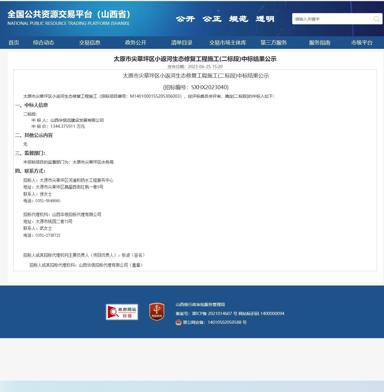 小返河生態(tài)修復(fù)工程施工(二標(biāo)段)中標(biāo)1344.37萬元