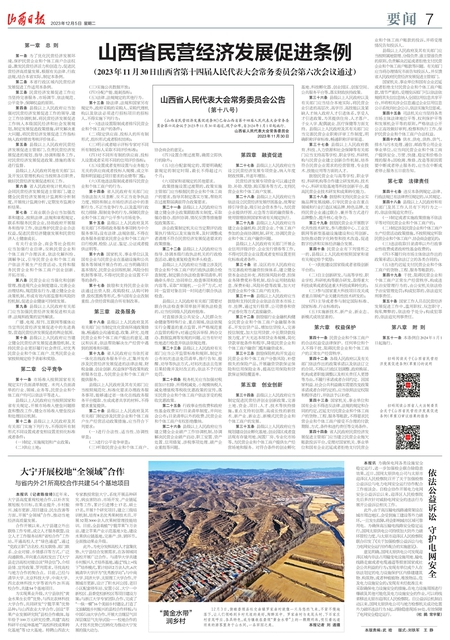 《山西省民營(yíng)經(jīng)濟(jì)發(fā)展促進(jìn)條例》已由山西省第十四屆人民代表大會(huì)常務(wù)委員會(huì)第六次會(huì)議于2023年11月30日通過(guò),現(xiàn)予公布,自2024年1月1日起施行。