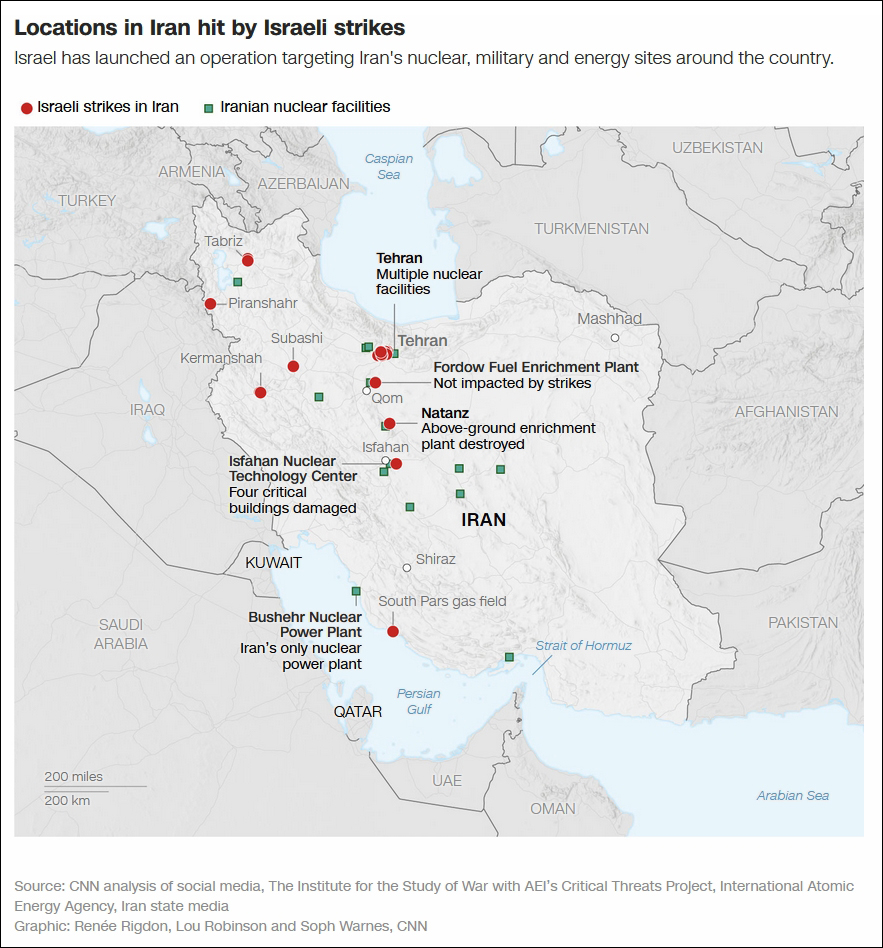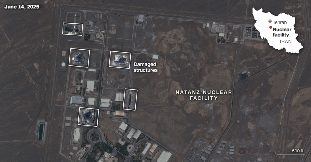 美國有線電視新聞網(wǎng)(CNN)15日報道,以色列此次空襲針對的是伊朗中北部三地——納坦茲(Natanz)、伊斯法罕(Isfahan)和福爾道(Fordow)的三個關(guān)鍵核設(shè)施。最新商業(yè)衛(wèi)星圖像顯示,至少在納坦茲和伊斯法罕,攻擊似乎已對地面設(shè)施造成了“重大破壞”。