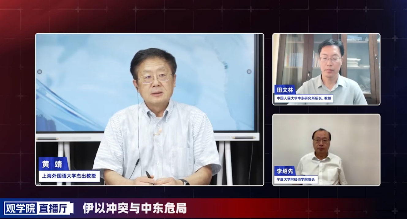 觀察者網(wǎng)《觀學院直播廳》第九期邀請上海外國語大學杰出教授黃靖,寧夏大學阿拉伯學院院長、中國中東學會副會長李紹先,中國人民大學區(qū)域國別研究院中東研究所所長、教授田文林進行對話,解讀當前的伊以沖突局勢。以下為文字稿下篇,上篇見鏈接。