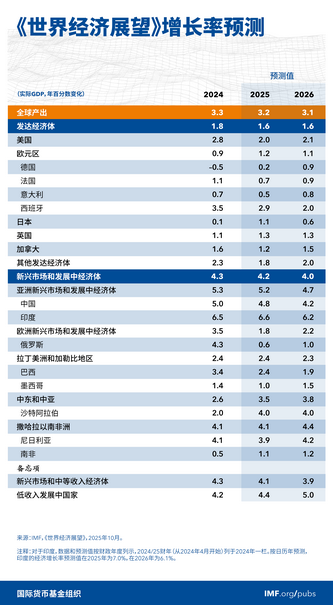 報告預(yù)計(jì),2025年世界經(jīng)濟(jì)將增長3.2%,較今年7月預(yù)測值上調(diào)0.2個百分點(diǎn);2026年將增長3.1%,與7月預(yù)測值持平。