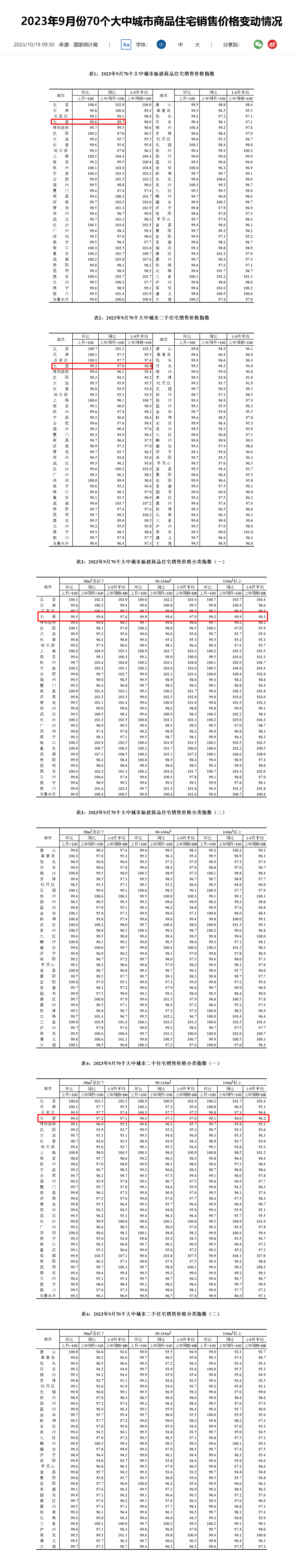 國(guó)家統(tǒng)計(jì)局的統(tǒng)計(jì)顯示,9月全國(guó)70個(gè)大中城市中,新房?jī)r(jià)格同比下降的城市有45個(gè),比上月增加1個(gè),較年內(nèi)高點(diǎn)減少10個(gè);二手房?jī)r(jià)格同比下降的城市有67個(gè),比上月增加1個(gè)。