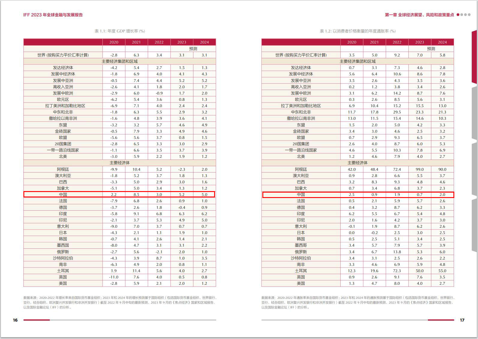 中新網(wǎng)廣州10月28日電(中新財經(jīng) 宮宏宇)“2023年全球經(jīng)濟(jì)增長進(jìn)一步放緩,預(yù)期增長3.1%,低于2022年的3.4%。2024年,全球經(jīng)濟(jì)增長預(yù)計將保持在3.1%的疲軟水平。中國經(jīng)濟(jì)2023年和2024年預(yù)計將分別增長5.2%和5%?!眹H金融論壇(IFF)20周年全球年會上最新發(fā)布的《IFF2023年全球金融與發(fā)展報告》指出。