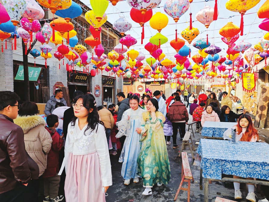 大年初一,游人穿梭于周倉(cāng)文化園景區(qū),沉浸式體驗(yàn)春節(jié)期間的別樣快樂。(周明飛攝)