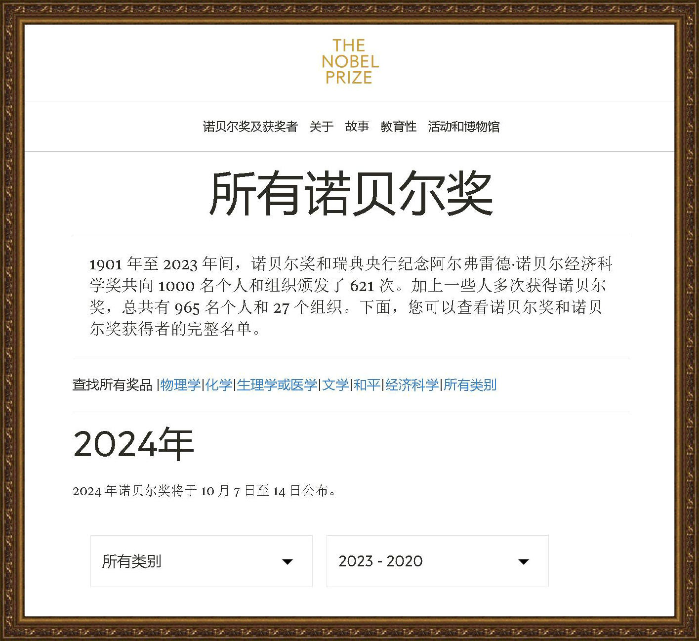2024年諾貝爾獎(jiǎng)?lì)C獎(jiǎng)時(shí)間