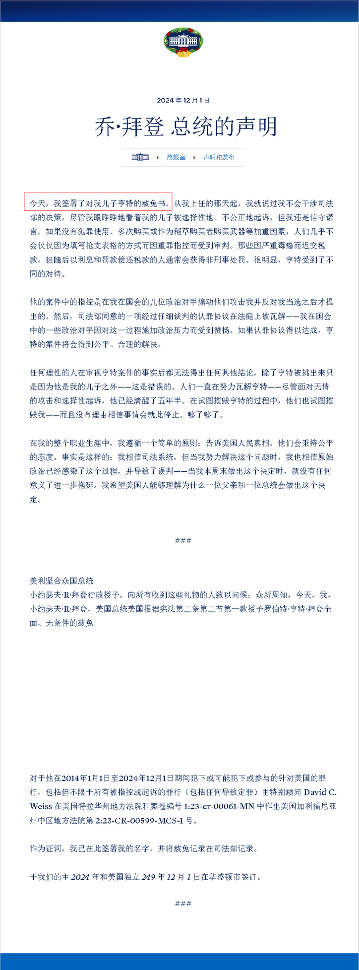 感悟美國國運的沒落——拜登赦子徇私枉法