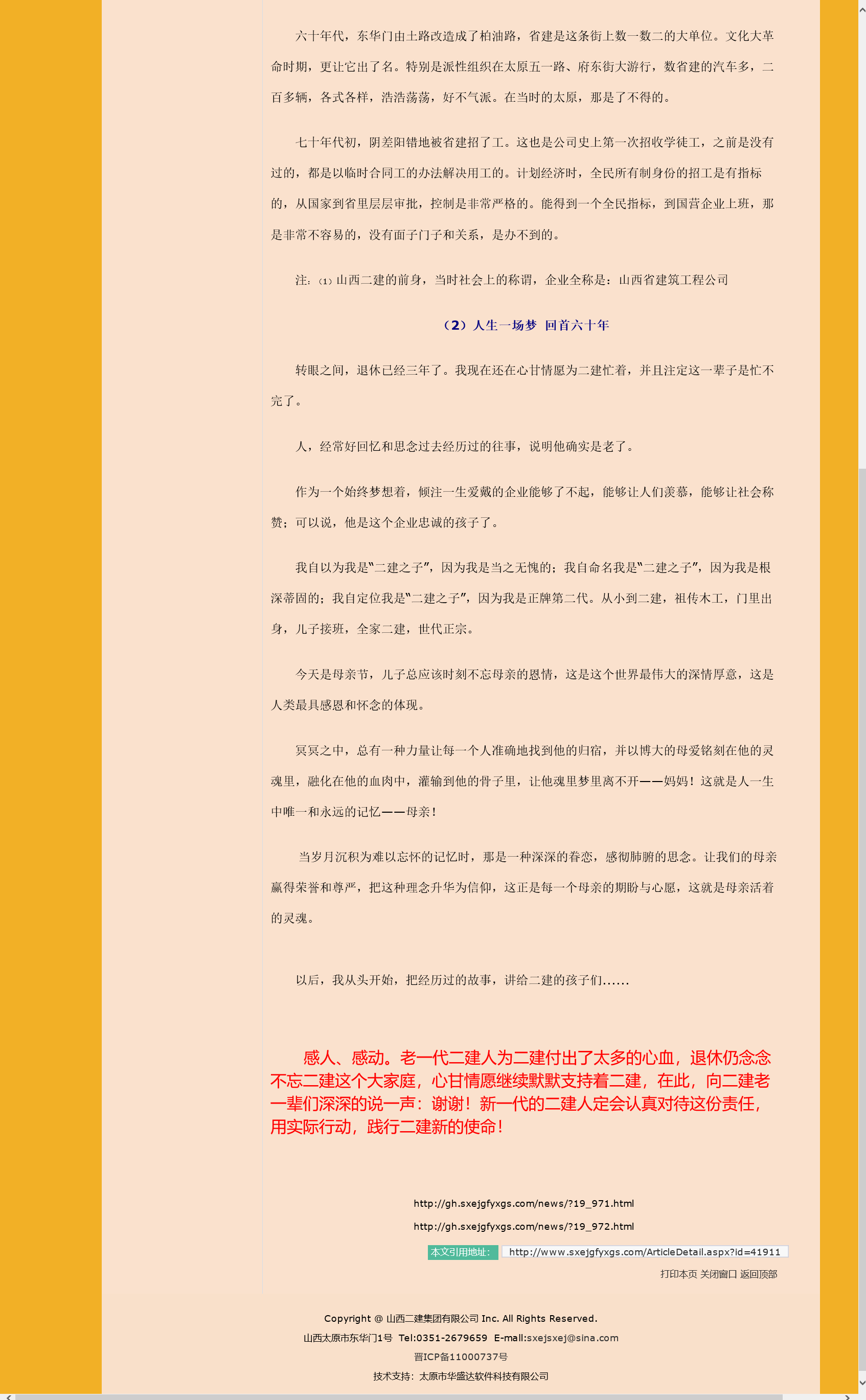 轉(zhuǎn)眼之間,退休已經(jīng)三年了。我現(xiàn)在還在心甘情愿為二建忙著,并且注定這一輩子是忙不完了。