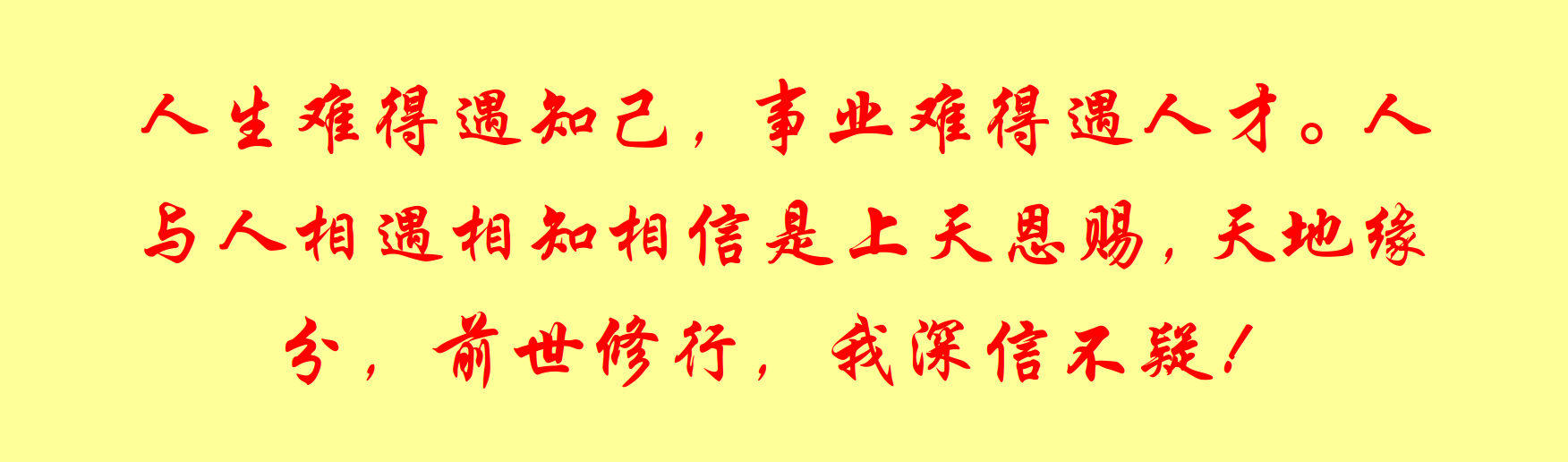 人生難得遇知己,事業(yè)難得遇人才。人與人相遇相知相信是上天恩賜,天地緣分,前世修行,我深信不疑!無緣即無份,對(duì)面不相識(shí),老死不往來,這就是天意!為什么人世間那么多人,而偏偏能夠進(jìn)入你的心里的人那么少,那么重要,那么讓你心甘情愿為他們付出,為他們奮斗,為他們活著呢?!這不是天意又是什么?!