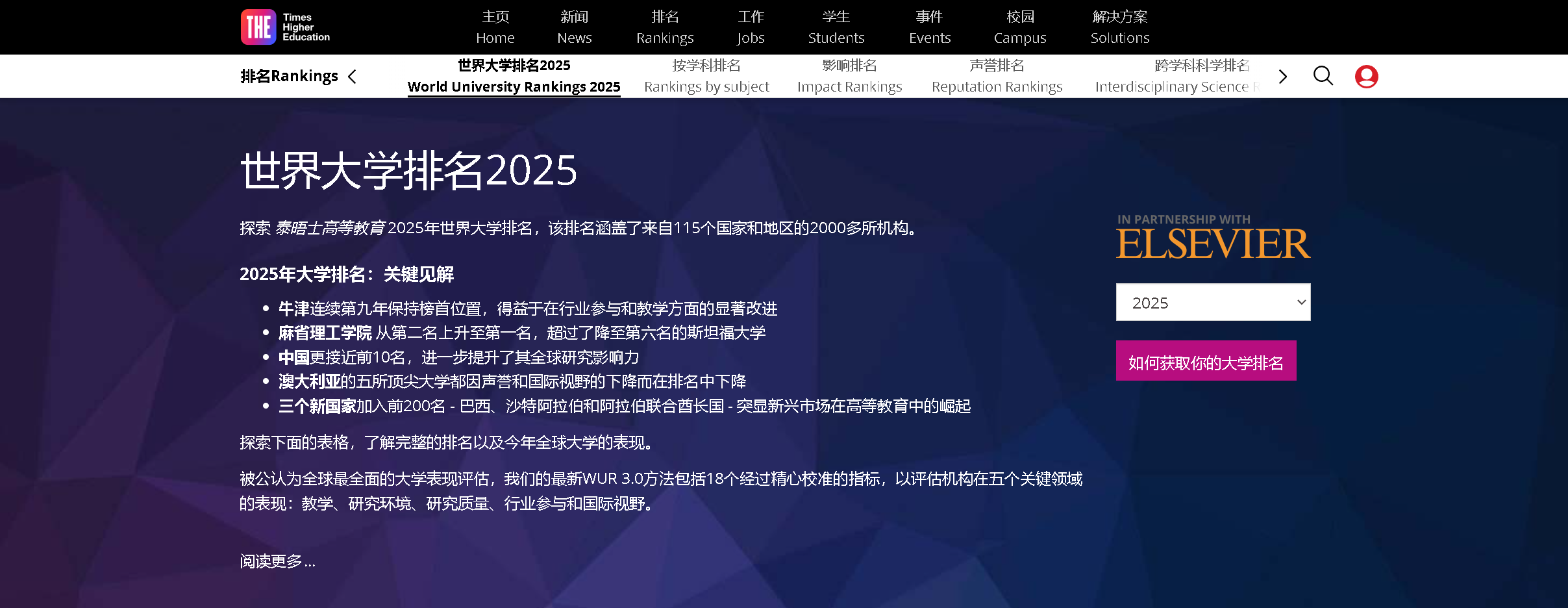 探索 泰晤士高等教育 2025年世界大學(xué)排名,該排名涵蓋了來自115個(gè)國(guó)家和地區(qū)的2855所機(jī)構(gòu)。