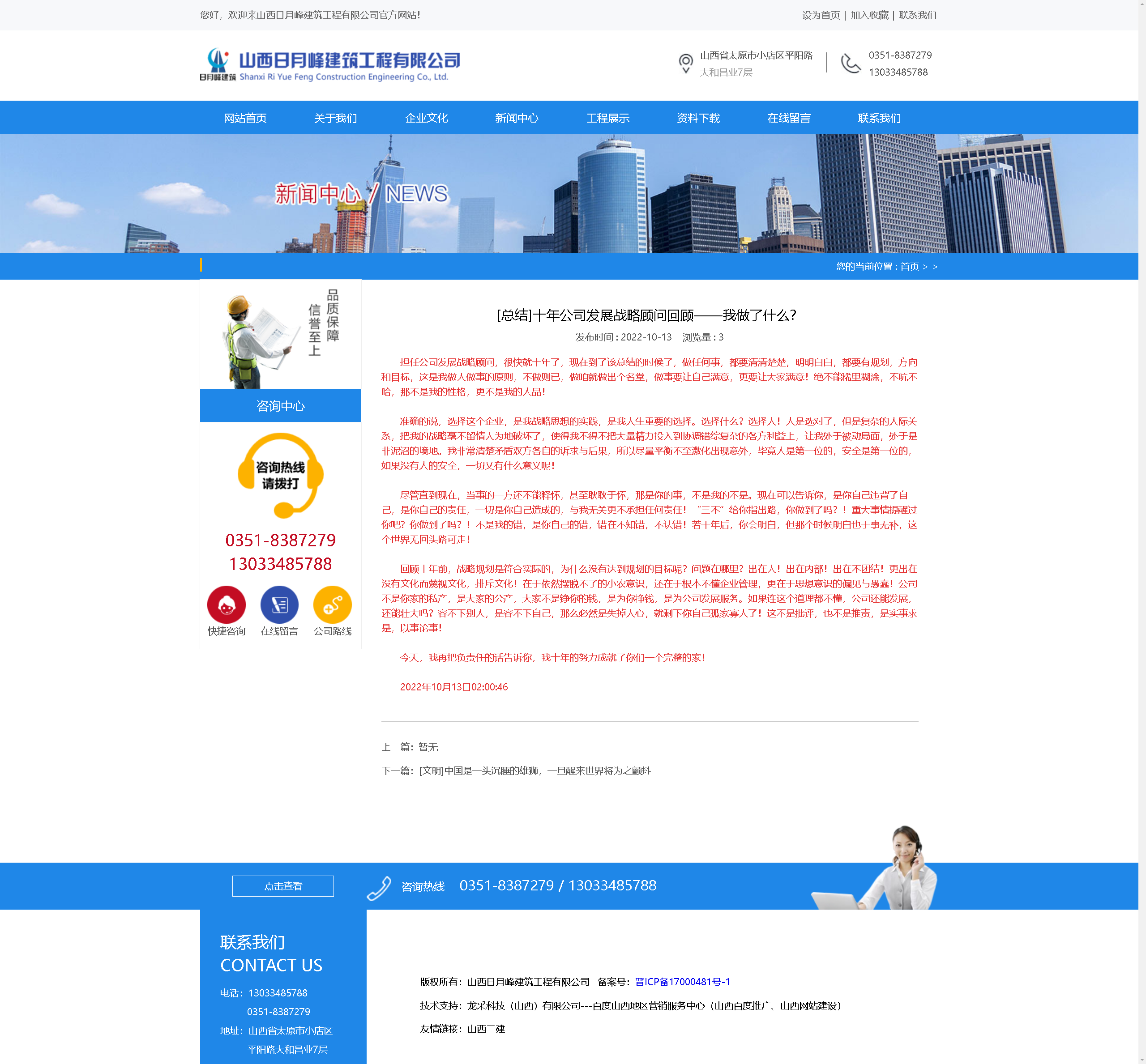擔(dān)任公司發(fā)展戰(zhàn)略顧問(wèn),很快就十年了,現(xiàn)在到了該總結(jié)的時(shí)候了,做任何事,都要清清楚楚,明明白白,都要有規(guī)劃,方向和目標(biāo),這是我做人做事的原則,不做則已,做咱就做出個(gè)名堂,做事要讓自己滿(mǎn)意,更要讓大家滿(mǎn)意!絕不能稀里糊涂,不吭不哈,那不是我的性格,更不是我的人品!
