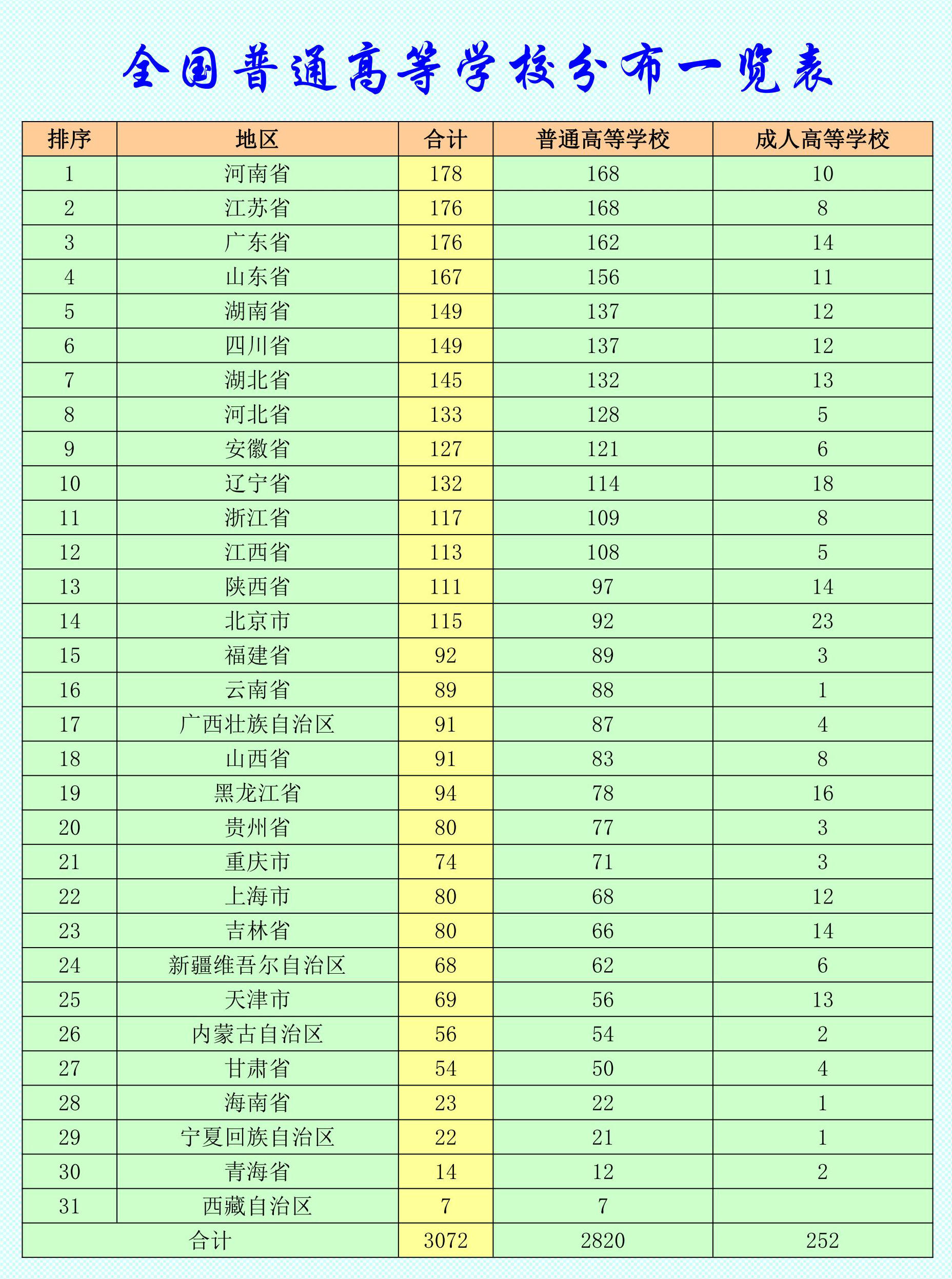 教育部昨天發(fā)布了2023年全國高等學(xué)校名單,根據(jù)名單我編輯了全國各地區(qū)高等學(xué)校分布一覽表。