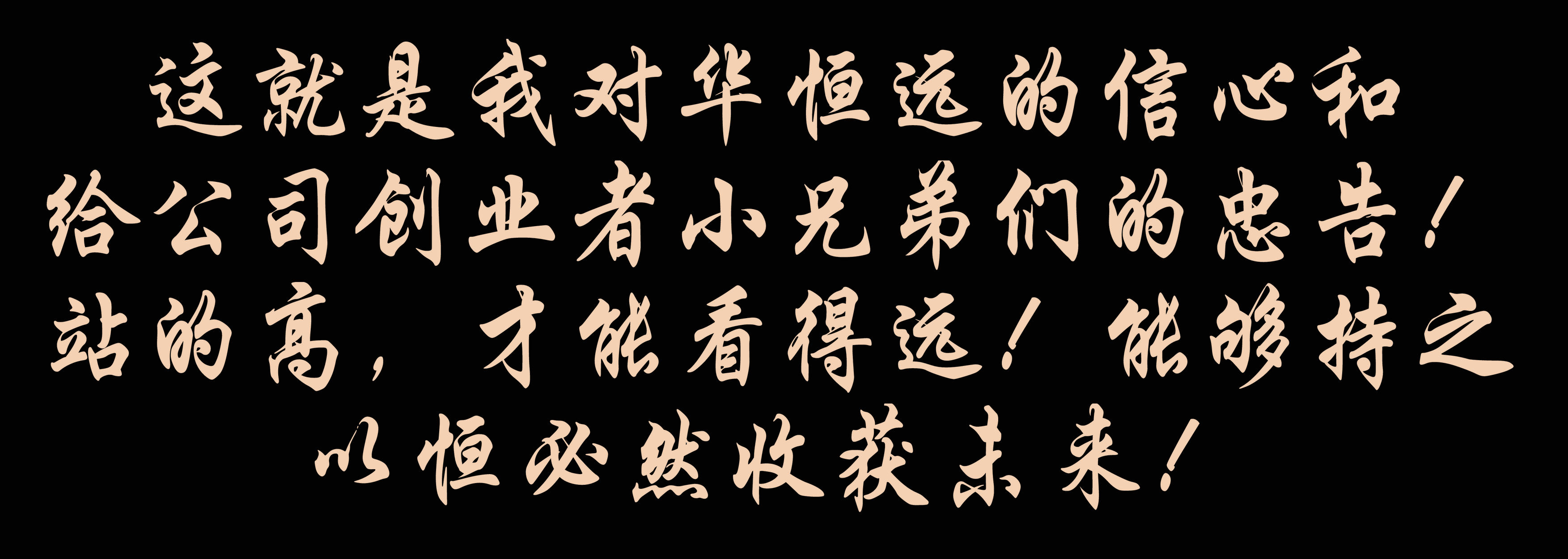 這就是我對(duì)華恒遠(yuǎn)的信心和給公司創(chuàng)業(yè)者小兄弟們的忠告!站的高,才能看得遠(yuǎn)!能夠持之以恒必然收獲未來!