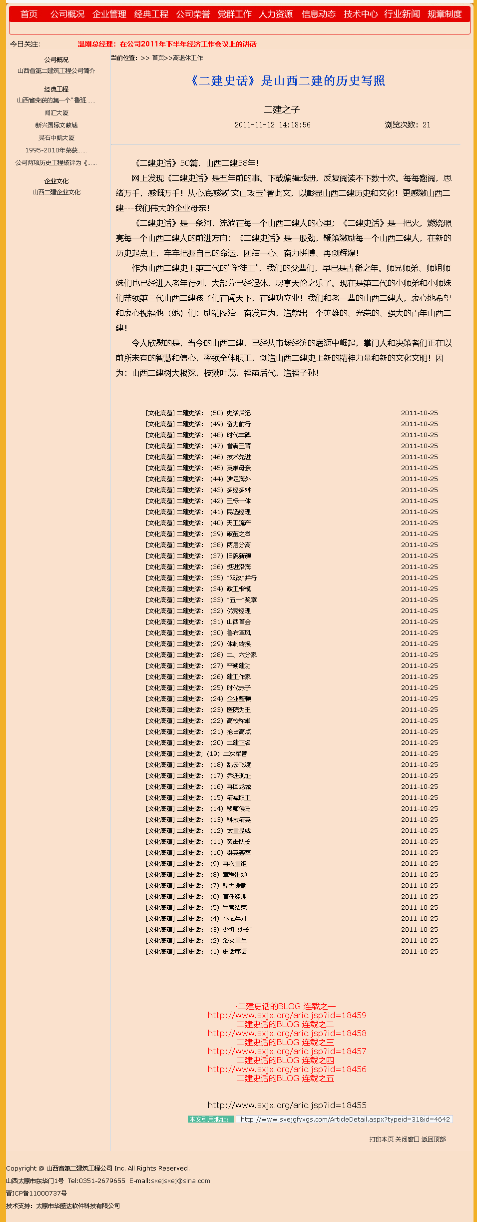 2011-10-25[文化底蘊(yùn)] 二建史話:(47)譽(yù)滿三晉