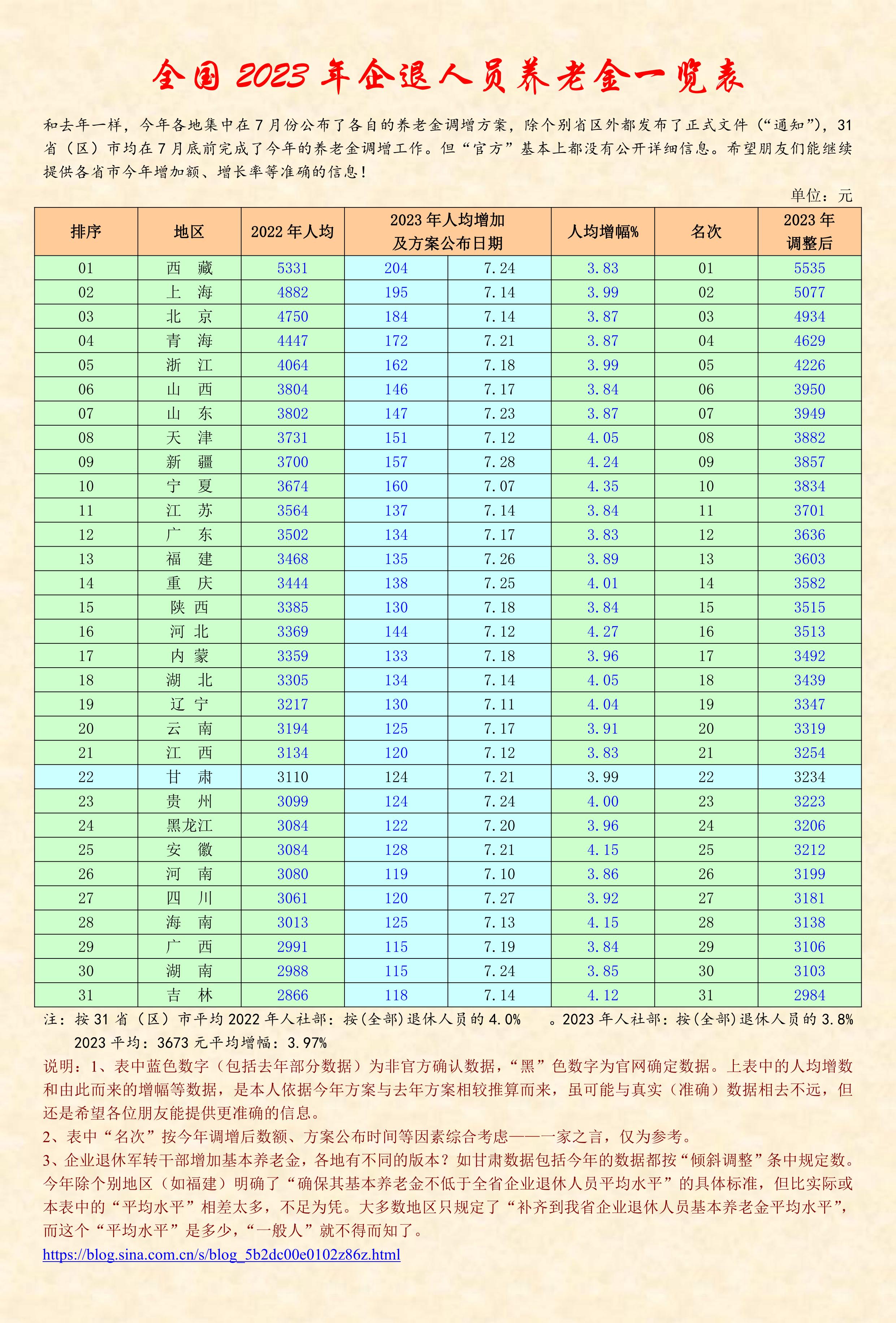 關(guān)注他的博客,已經(jīng)好多年,他每年不厭其煩做一件事情,讓我感動(dòng),那就是為全國(guó)企業(yè)退休的老人們服務(wù),提供當(dāng)年養(yǎng)老金信息的同時(shí),編輯了比較和匯總,讓大家一看便知,心中有數(shù),各得其所!