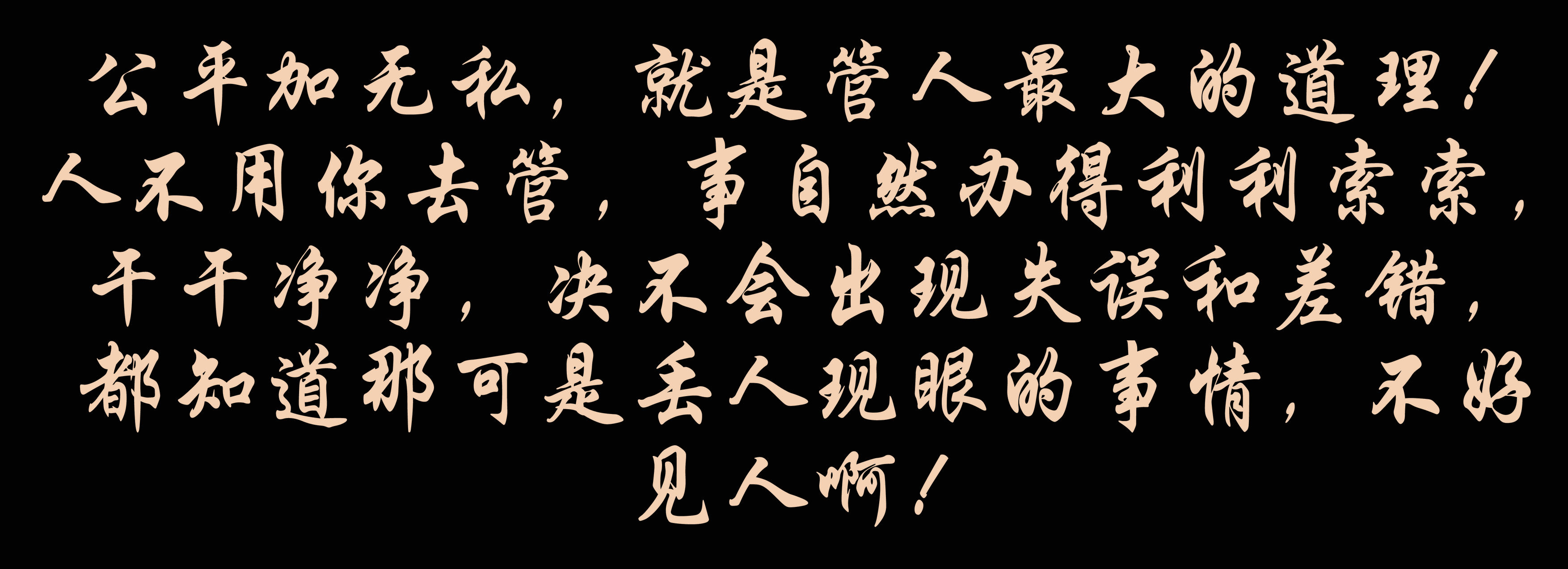 公平加無私,就是管人最大的道理!人不用你去管,事自然辦得利利索索,干干凈凈,決不會出現(xiàn)失誤和差錯,都知道那可是丟人現(xiàn)眼的事情,不好見人??!