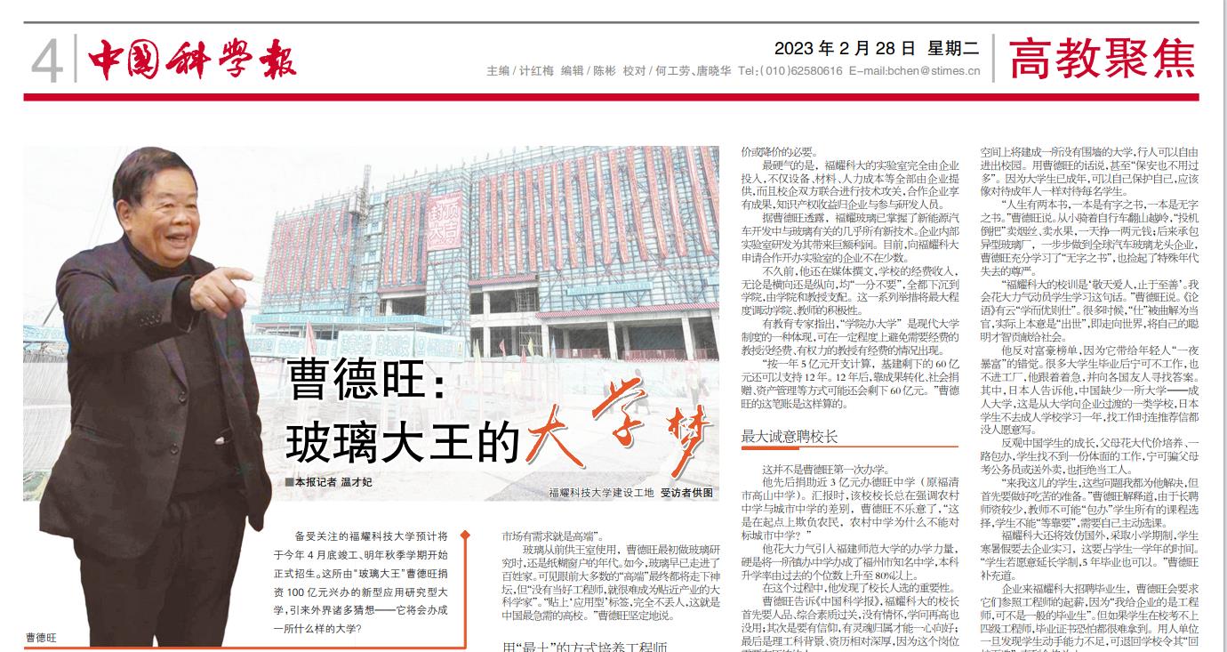 8月9日,福耀科技大學(籌)第一屆理事會第一次會議召開,曹德旺參加并主持會議。會議審議研究了《理事會章程》、《理事會議事規(guī)則》、《大學章程及辦學方針》、《大學2023年8-12月份工作計劃》等9項重要議題,并決定聘請中國科學院梅宏院士為福州市福耀高等研究院/福耀科技大學(籌)校長。