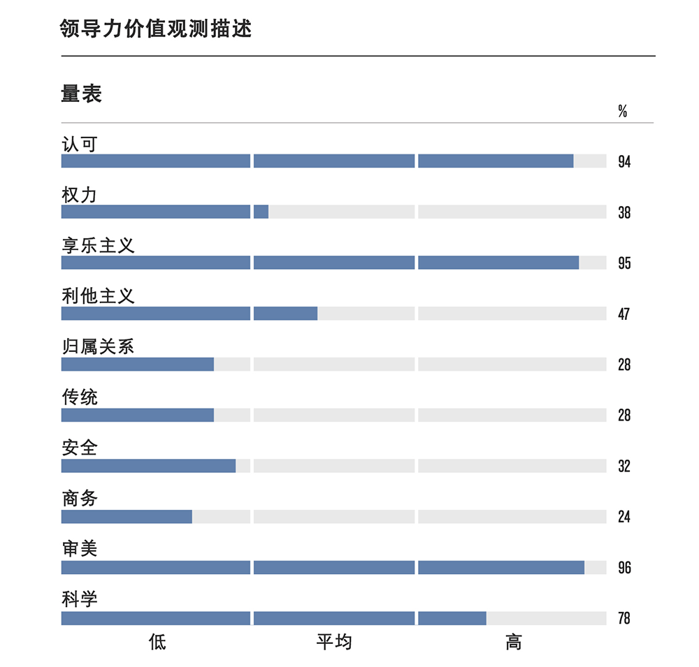例如,MBTI性格測試把我歸類為INTJ-T型人格,而霍根測評則將結(jié)果細(xì)分為不同的量表,比如交際、認(rèn)可或?qū)徝?。?8個量表被細(xì)分為更詳盡的子量表,訓(xùn)練有素的心理學(xué)家用這些量表來推斷高管的性格、領(lǐng)導(dǎo)能力和人際關(guān)系技巧。例如,我的報告顯示我的認(rèn)可度得分很高,這表明我往往渴望因?yàn)槌删投@得贊揚(yáng),這種欲望能夠激勵我繼續(xù)奮勇向前,從而成為人們關(guān)注的焦點(diǎn),并一舉成名。