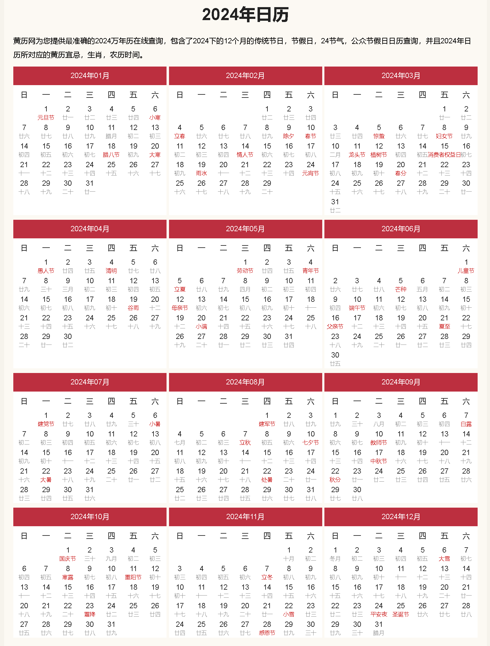 2024年日歷