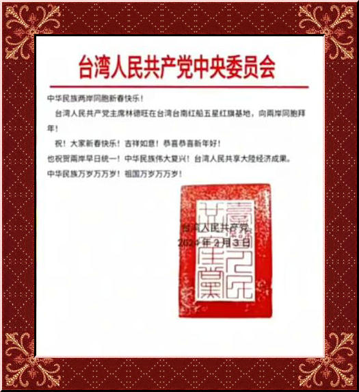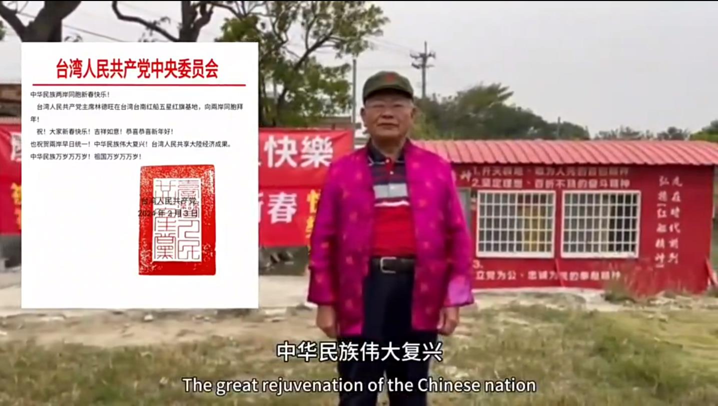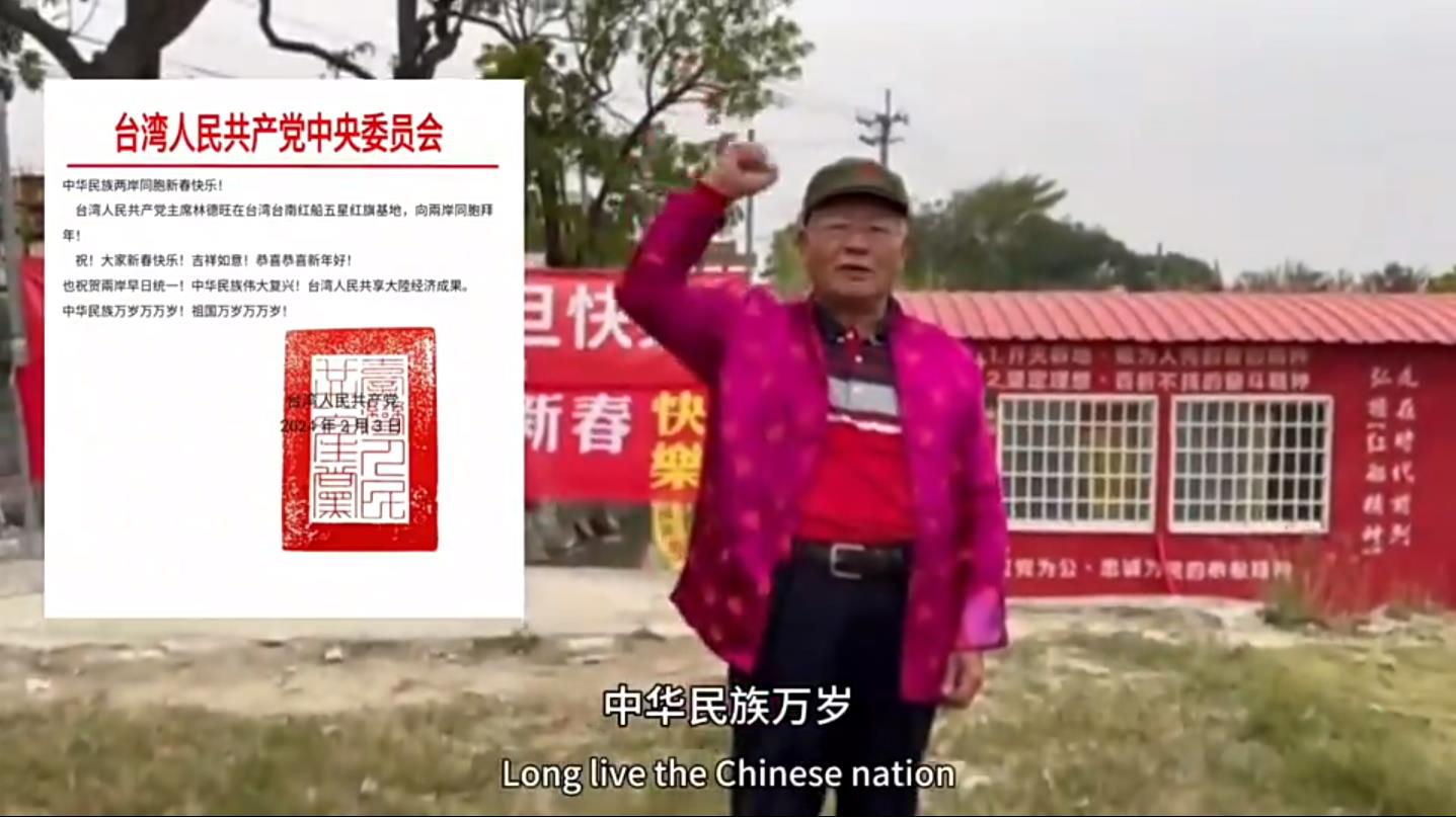 臺灣人民共產黨主席林德旺在臺灣臺南紅船五星紅旗基地,向兩岸同胞拜年!