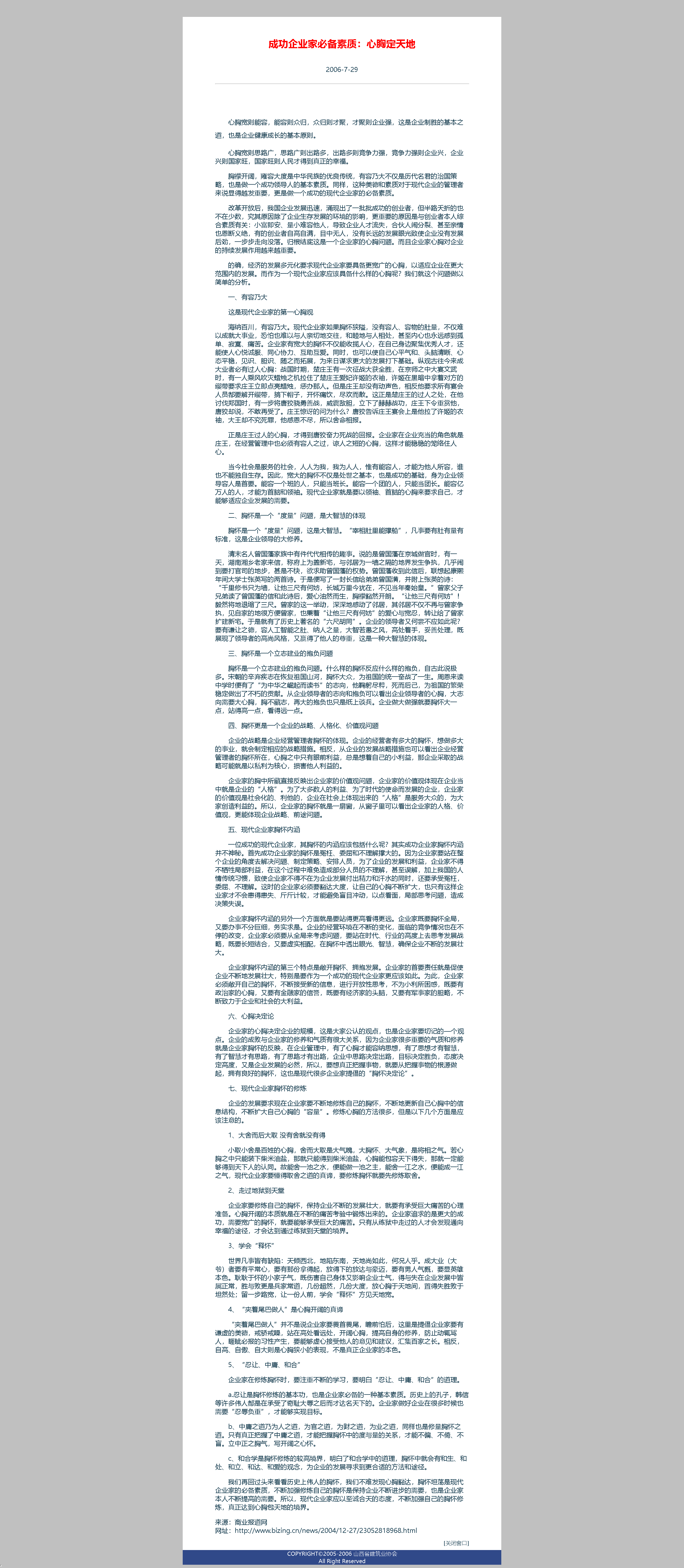 下面文章是在協(xié)會負(fù)責(zé)網(wǎng)站時轉(zhuǎn)帖的文章,時隔十八年,依然還有開悟啟慧的意義和價值,今日再次推薦給未來的企業(yè)家們品讀體會實踐。