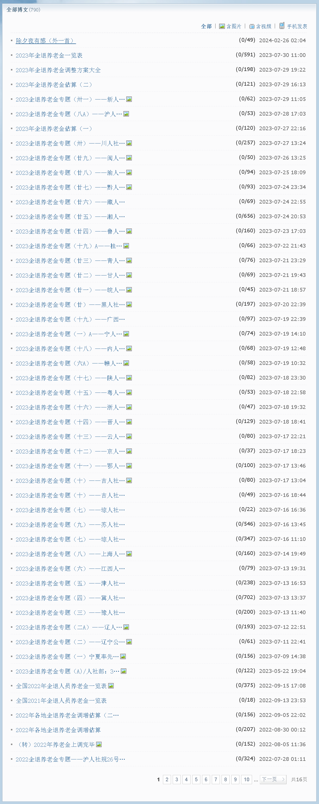 今年國家發(fā)布二十連漲政策,我看他的博客沒有更新。山東省第一家公布2024年退休人員養(yǎng)老金上調,水曰北流泉博客依然如故。